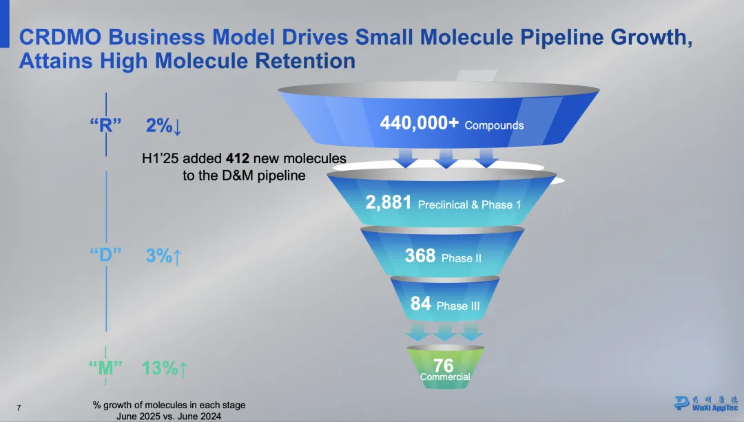 药明康德“让天下没有难做的药,难治的病”的愿景,本质上是跟随新分子浪潮,攻克不可成药靶点,不断降低入口门槛,discovery/R端项目越来越多,不可避免会成就更多D端项目,而D端的速度、质量和成本的综合能力,直接决定向M端的转换率。